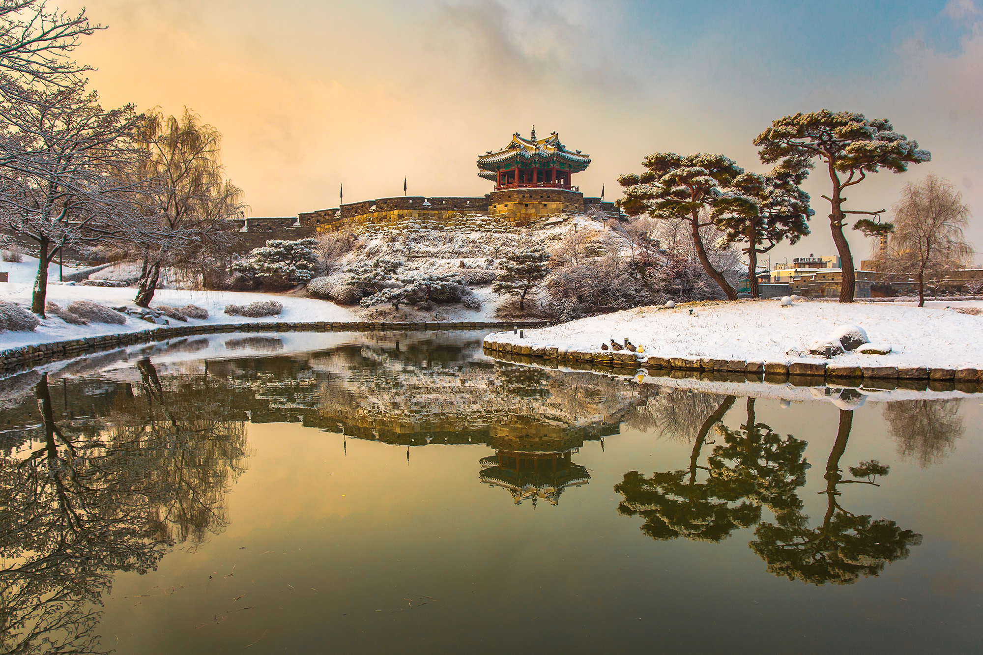 - 방화수류정: 수원의 대표 포토존, 연못과 정자가 어우러진 아름다운 경관.